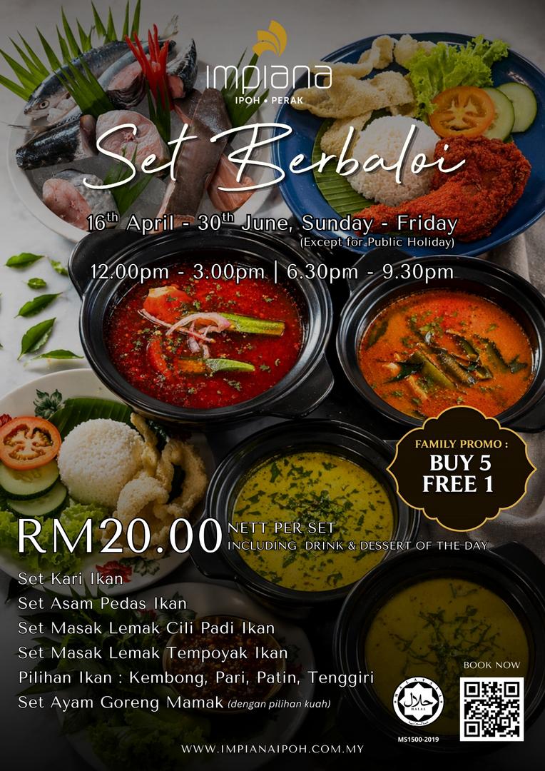 Grab the Set Berbaloi lunch for only RM 20.00 NETT, which includes a main course, Drink of the Day, and Dessert of the Day. Bring your friends and family and get the ‘Buy 5, Get 1 Free’ deal! Available Sunday to Friday until 30th June 2026.